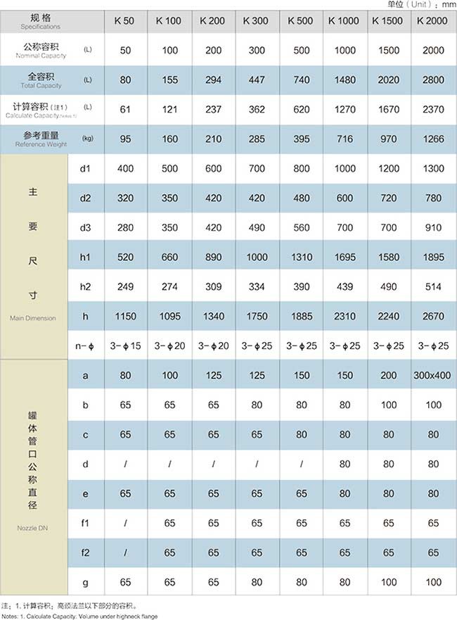 2.搪玻璃開式反應(yīng)釜參數(shù)表