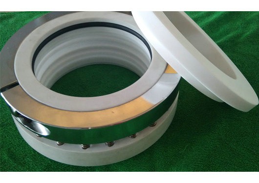 2、當(dāng)介質(zhì)有毒、易燃、易爆以及對(duì)泄漏量有嚴(yán)格要求時(shí),不易使用。適用于公稱壓力小于或等于0.4MPa,工作溫度為大于-20-200°C的搪玻璃攪拌容器用機(jī)械密封,攪拌軸外徑為40-140mm,轉(zhuǎn)軸線速度小于2m/S。采用單端面小彈簧聚四氟乙烯波紋管。 使用工況:無懸浮顆粒的腐蝕性氣體(HF除外) 單端面機(jī)械密封工作原理:靠垂直于旋轉(zhuǎn)軸線的端面在流體壓力和補(bǔ)償機(jī)構(gòu)彈力的作用以及輔助密封的配合下保持貼合并相對(duì)滑動(dòng)而構(gòu)成的防止流體泄漏的裝置。